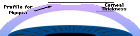 Rather than making cuts in the cornea, the PRK process uses an excimer laser to sculpt an area 5 to 9 millimeters in diameter on the surface of the eye. As you can see from the diagram, this process removes only 5-10% of the thickness of the cornea for mild to moderate myopia and up to 30% for extreme myopia - about the thickness of 1 to 3 human hairs. The major benefit of this procedure is that the integrity and the strength of the corneal dome is retained. The excimer laser is set at a wavelength of 193nm, which can remove a microscopic corneal cell layer without damaging any adjoining cells. This allows the practitioner to make extremely accurate and specific modifications to the cornea with little trauma to the eye.